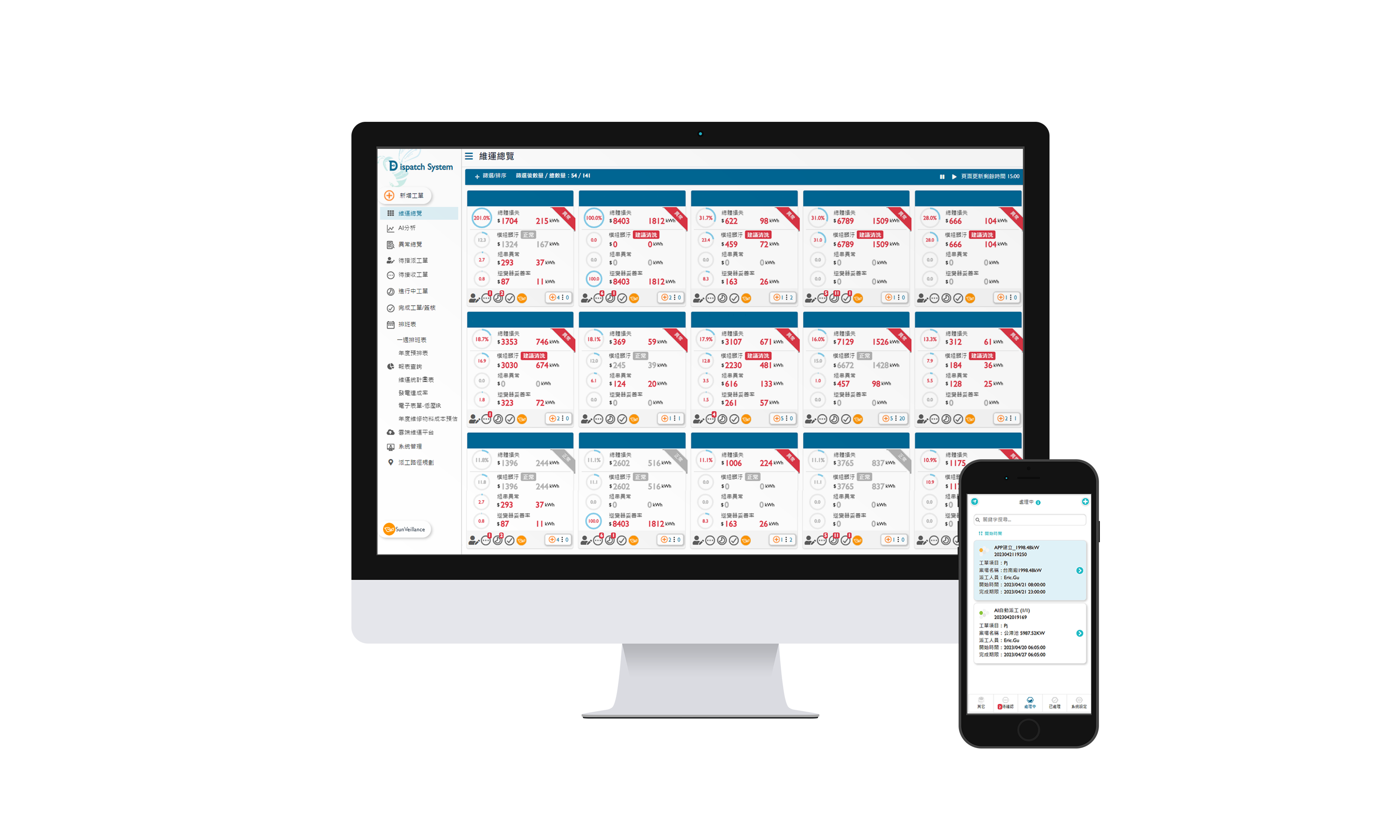 304永利集团太陽能智能運維管理系統包括雲端監控工具、AI分析與智慧自動派工及運維APP,實現電廠自主管理。